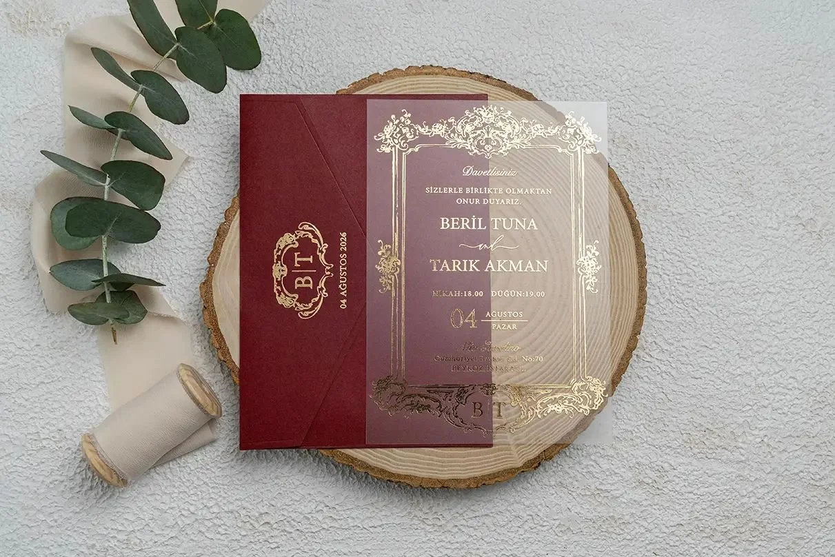 Luxe Foil Leaf Invite - 9214 €95.00 Luxe White Acrylic Invite - 9311 €105.00 Midnight Green Arch Invitation - 9372 €90.00 Luxury Cutout Invitation - 9162 €65.00 Luxury Green & White Cutout Invitation - 9163 €65.00 Elegant Islamic Invitation - 9179 €65.00 Beige & Gold Wax Seal Invitation - 9192 €70.00 Elegant Gold Leaf Invite - 9229 €100.00 Chic square invitation - 9251 €65.00 Gold Accented Green Envelope Invitation - 9255 €70.00 Luxury Green Leaf Invitation - 9258 €105.00 Beige & Black Rectangular Invite - 9259 €70.00 Luxury Beige & Gold Invitation - 9262 €70.00 Lux Noir Gold Foil Invitation - 9265 €95.00 Bordeaux Blossom Luxe Invitation - 9267 €100.00 Lux Square Black & Gold Invitation - 9272 €100.00 Oblique Cut Luxe Invitation - 9275 €70.00 Refined Black & Beige Invitation - 9281 €90.00 Grey & White Cut-Out Invitation - 9291 €65.00 Soft Luxe Cut-Out Invitation - 9301 €65.00 Lux Grey & Silver Foil Invitation - 9304 €60.00 Modern Luxe Silver Foil Invitation - 9312 €70.00 Transparent Gold Luxe Invitation - 9316 €105.00 Green Luxe Gold Foil Invitation - 9317 €70.00 Initials Cut-Out Luxe Black Invitation - 9318 €65.00 Pink Enchantment Invitation - 9322 €90.00 Personalized Blue Envelope Invitation - 9336 €65.00 Luxurious Transparent Invitation with Gold Foil - 9363 €110.00 Timeless Luxury Transparent Invitation - 9364 €105.00 Golden Green Luxe Invitation- 9366 €105.00 Aurora Luxe Transparent Invitation - 9367 €110.00 Golden Leaf Luxe Invitation - 9328 €105.00 Silver Mist Transparent Invitation - 9368 €105.00 Black Arched Invite - 9373 €95.00 Black Opal Transparent Invitation - 9371 €105.00 Sage & Sand Luxe Invitation - 9193 €125.00 Leaf & Ribbon Luxe Invitation - 9206 €95.00 Floral Essence Transparent Invitation - 9213 €100.00 Timeless Neutrals Square Invitation - 9227 €80.00 Timeless Crest Invitation - 9248 €100.00 Serene Curve Invite - 9252 €70.00 Squared Golden Leaf Invite - 9253 €65.00 Classic Neutral Luxe Invitation - 9254 €70.00 Golden Branches Invitation - 9256 €110.00 Blush Luxury Invite - 9257 €95.00 Opulent Gold Luxe Invitation - 9263 €115.00 Initials Of Elegance Invitation - 9264 €90.00 Leafy Luxe Invitation - 9269 €60.00 Curved Elegance Invitation - 9273 €80.00 Prestige Transparent Invitation - 9277 €140.00 Golden Accent Invitation - 9282 €80.00 Refined Reveal Invitation - 9283 €70.00 Golden Palm Arch Invitation - 9309 €70.00 Golden Verdance Invitation - 9319 €95.00 Wax Seal Bloom Invitation - 9279 €95.00